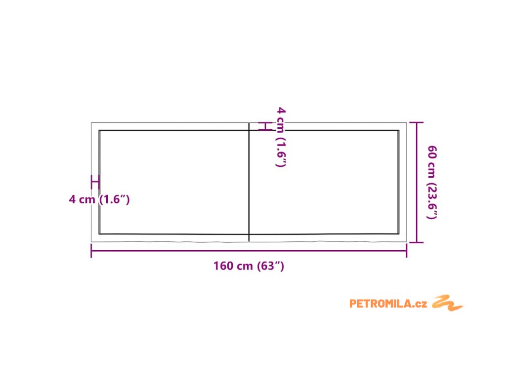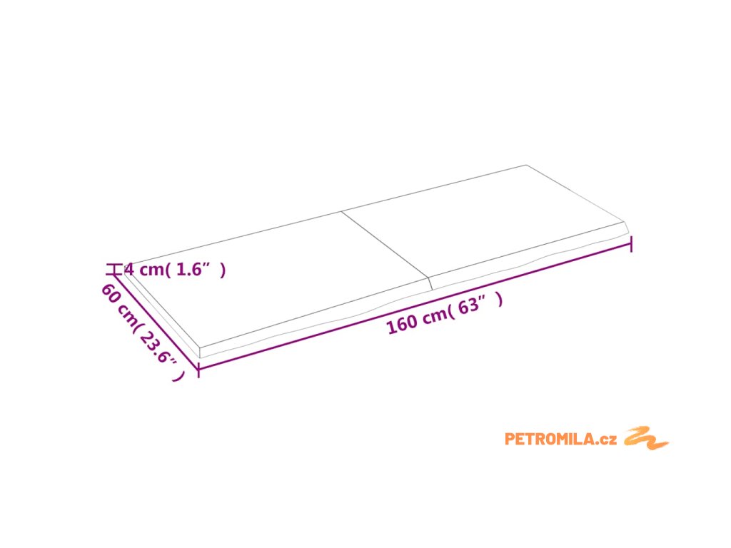Nástěnná police hnědá 160x60x(2-4)cm ošetřený masivní dub