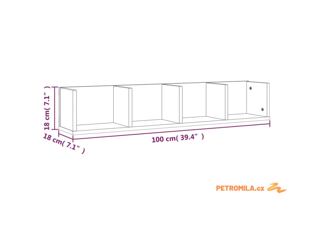 - Rozměry: 100 x 18 x 18 cm (Š x H x V)