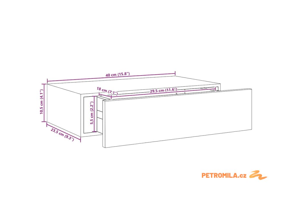 - Rozměry zásuvky: 29,5 x 18 x 5,5 cm (Š x H x V)