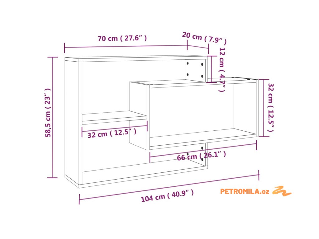 - Rozměry: 104 x 20 x 58,5 cm (Š x H x V)