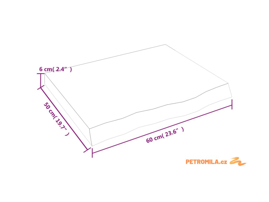 Nástěnná police světle hnědá 60x50x(2-6)cm ošetřený masivní dub