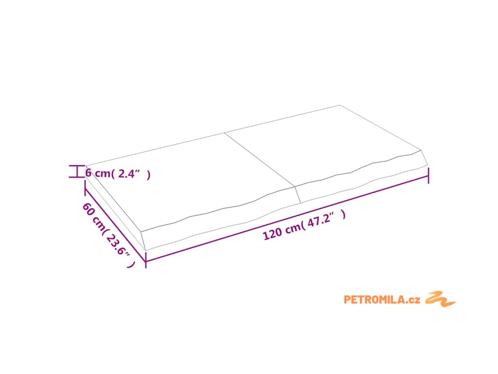 - Celkové rozměry: 120 x 60 x(2-6) cm (D x Š x T)