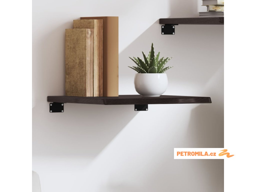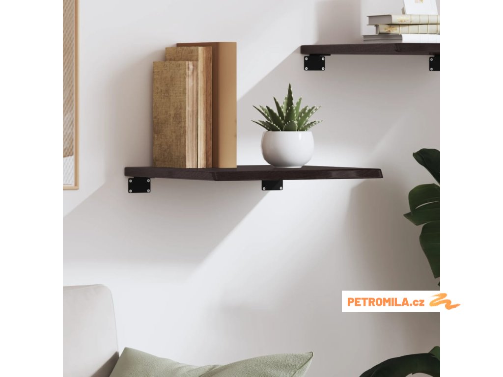 - Ošetřený povrch: Dřevěná police byla ošetřena tmavou barvou, je tedy připravena k použití a není nutná žádná další povrchová úprava.