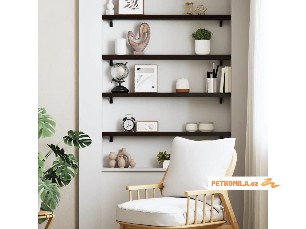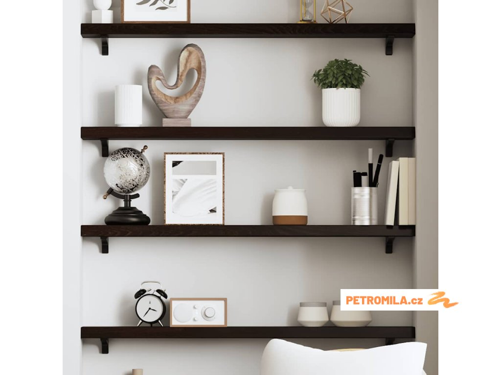 - Ošetřený povrch: Dřevěná police byla ošetřena tmavou barvou, je tedy připravena k použití a není nutná žádná další povrchová úprava.