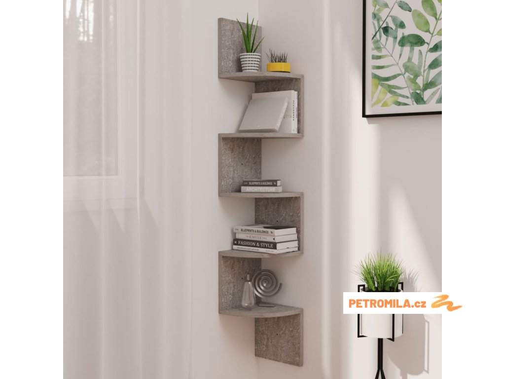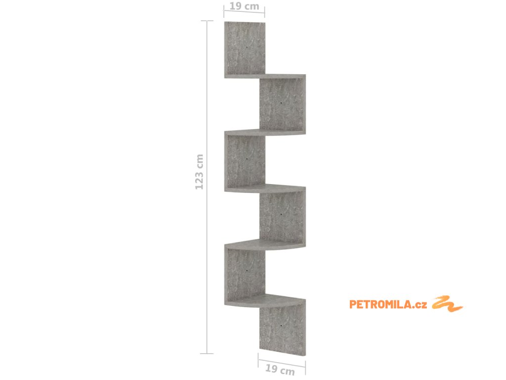 Nástěnná rohová police betonově šedá 19 x 19 x 123 cm kompozit