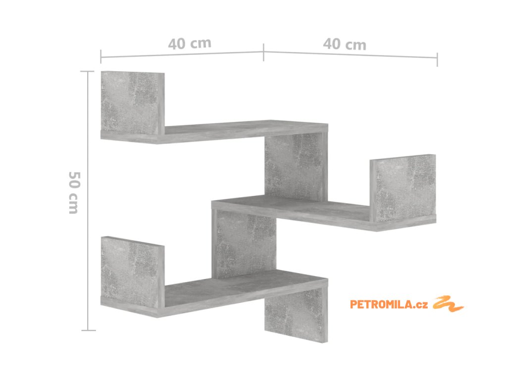 Nástěnná rohová police betonově šedá 40x40x50 cm dřevotříska