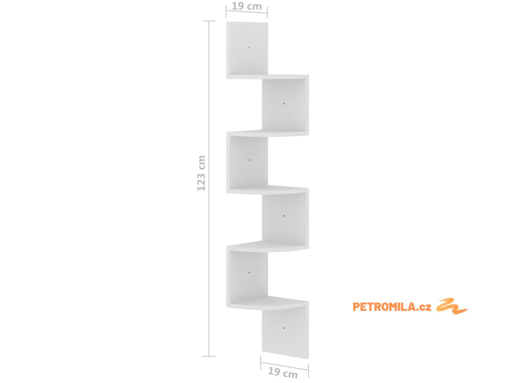 Nástěnná rohová police bílá 19 x 19 x 123 cm kompozitní dřevo