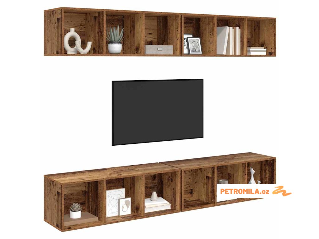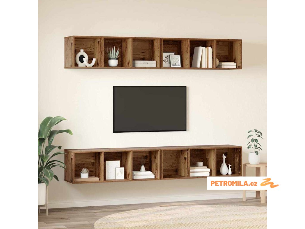 Nástěnná skříň na TV 4 pcs Staré dřevo 37 x 37 x 107.5 cm
