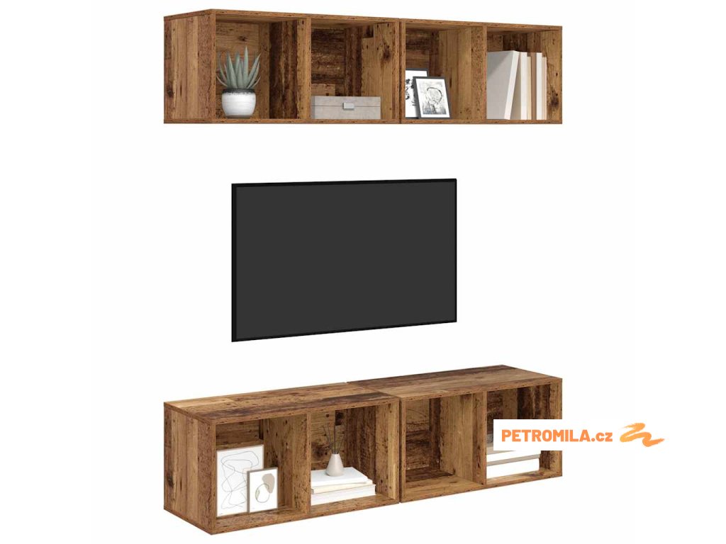 Nástěnná skříň na TV Nástěnný 4 pcs Staré dřevo 37 x 37 x 72 cm