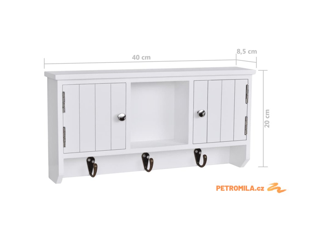 Nástěnná skříňka na klíče a šperky s dvířky a háčky