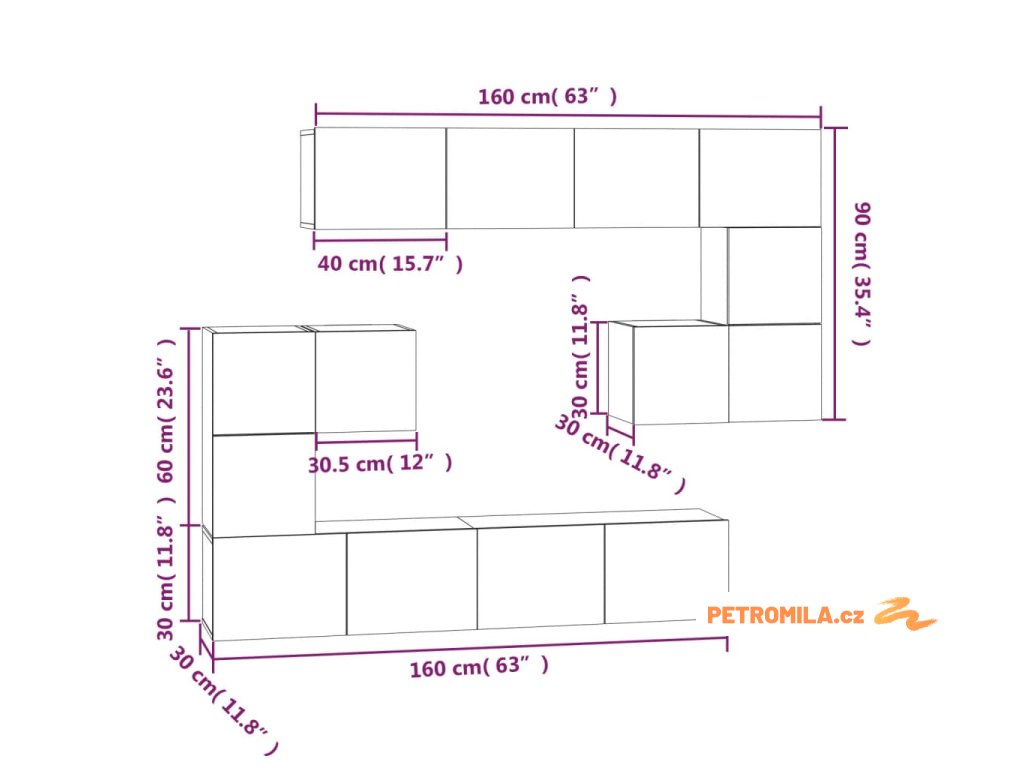 - Rozměry (malé skříňky): 30,5 x 30 x 30 cm (Š x H x V)