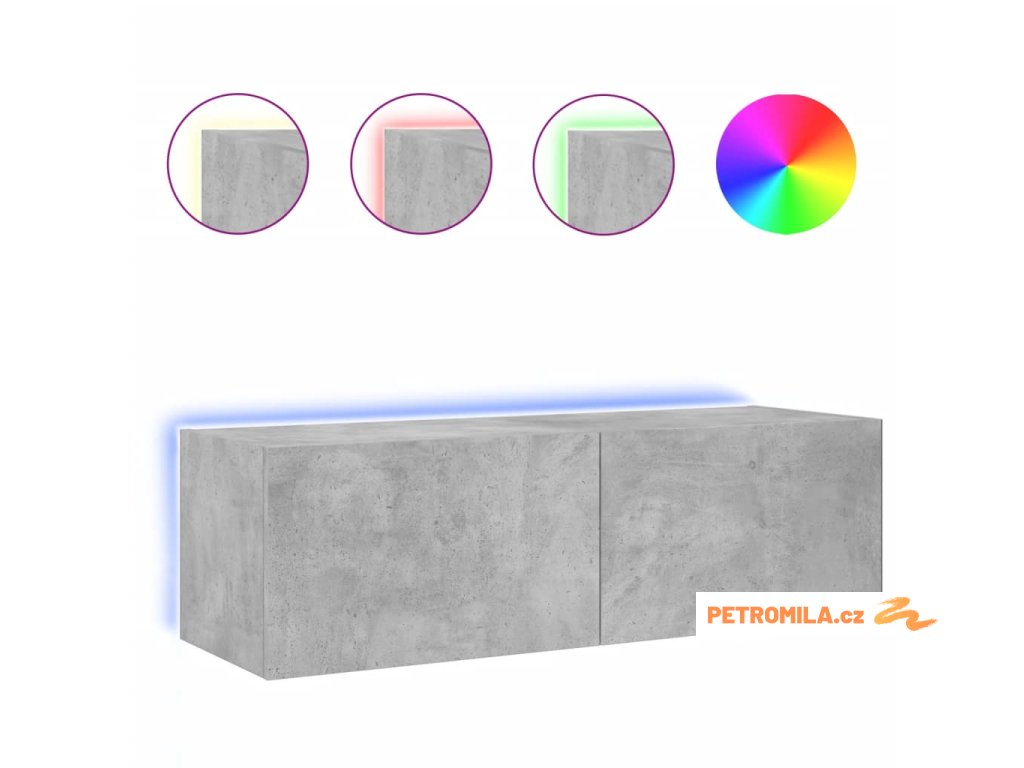 Nástěnná TV skříňka s LED osvětlením betonově šedá 100x35x31 cm