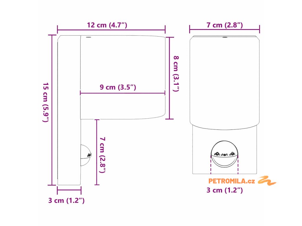 - Celkové rozměry: 12 x 7 x 15 cm (D x Š x V)