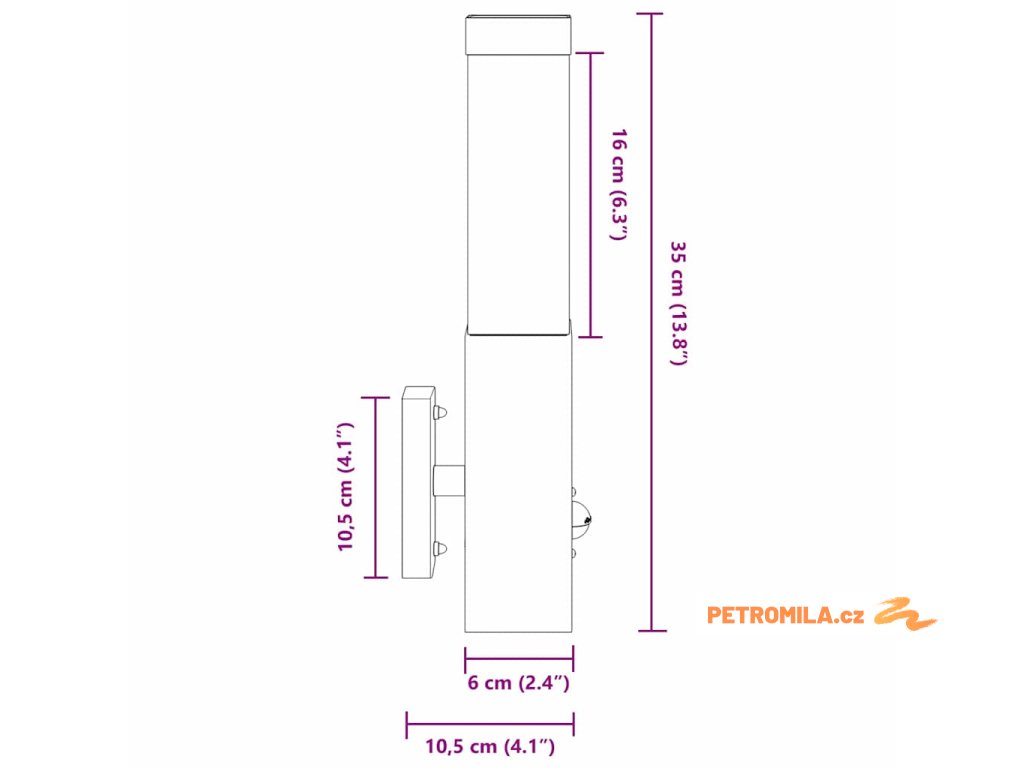 Nástěnná venkovní svítidla 2 pcs Stříbrná 10,5 x 6 x 35 cm