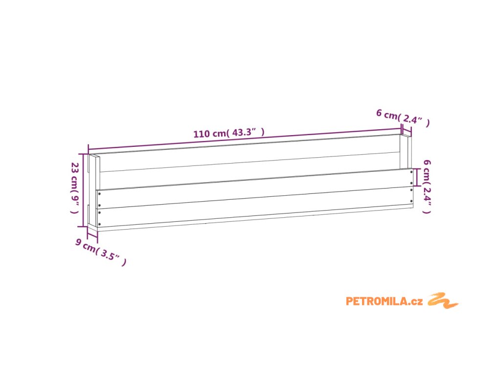 - Rozměry: 110 x 9 x 23cm (Š x H x V)
