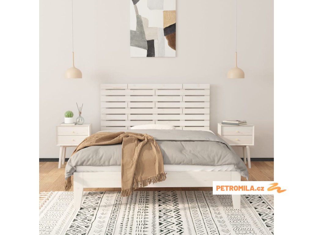 Nástěnné čelo postele bílé 126 x 3 x 63 cm masivní borové dřevo