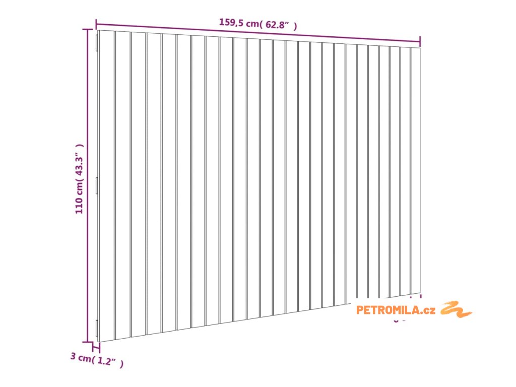 - Rozměry: 159,5 x 3 x 110 cm (D x Š x V)