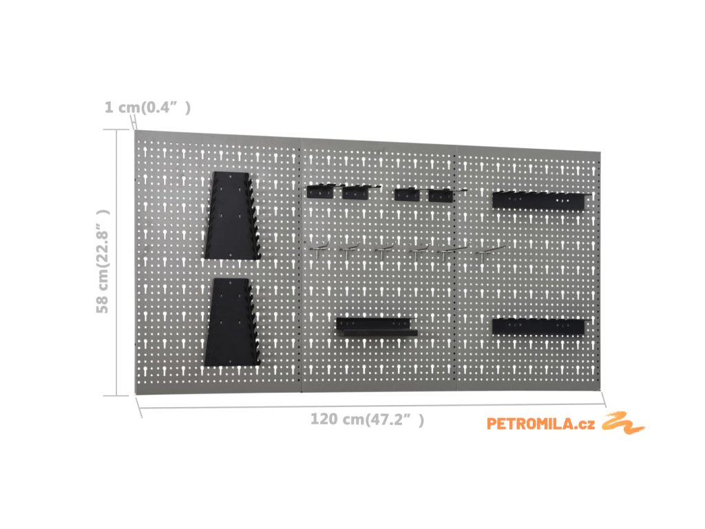 Nástěnné děrované panely 3 ks 40 x 58 cm ocel