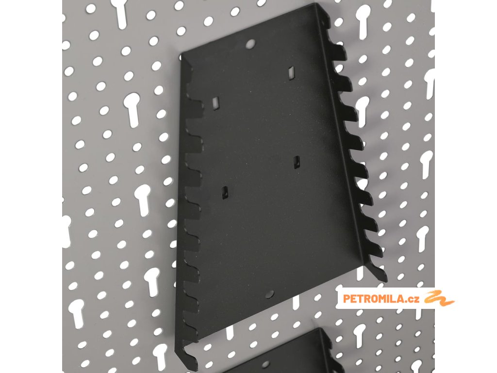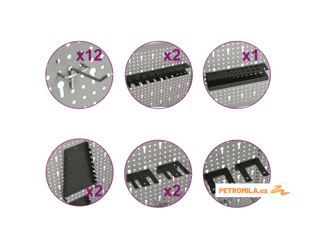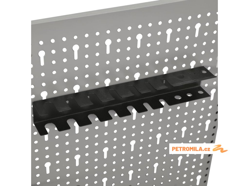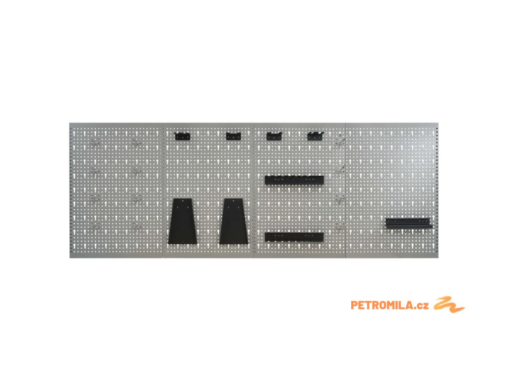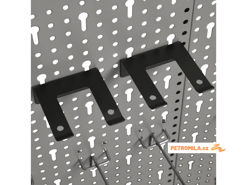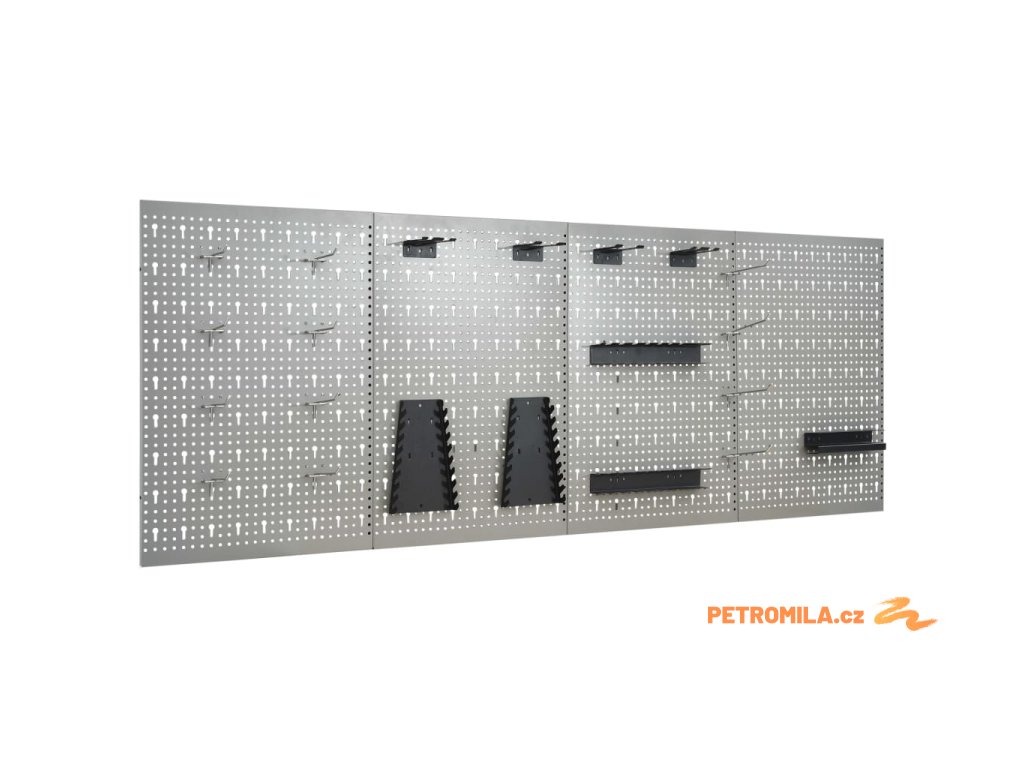 Tyto panely do dílny na nářadí jsou vyrobené z masivní oceli a unesou váhu celé řady různých nástrojů, jako jsou vrtačky, kleště, šroubováky a klíče. Panely jsou děrované pro snadné a bezpečné zavěšení nástrojů. Tyto 3 nástěnné panely je možné spojit dohromady a vytvořit jeden velmi pevný celek. Je to ideální doplněk ponků a dílenských skříní s praktickou šířkou 160 cm.