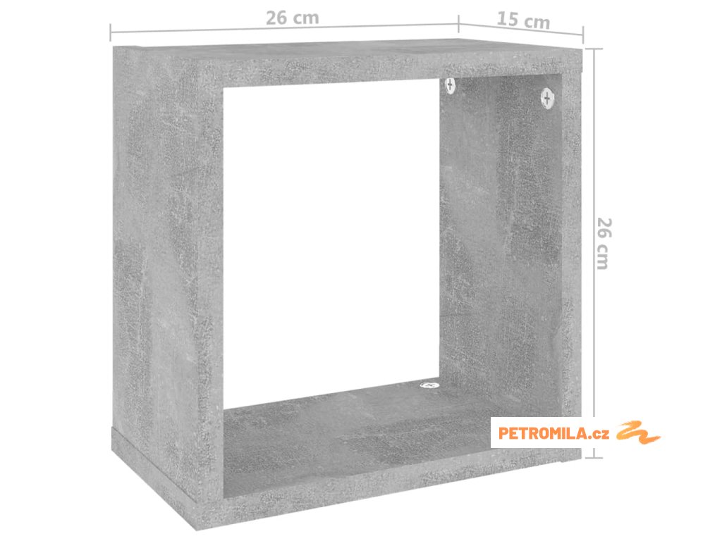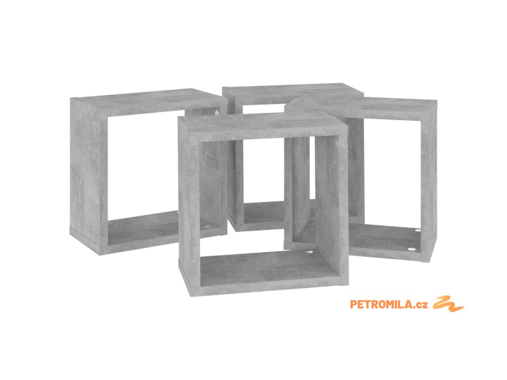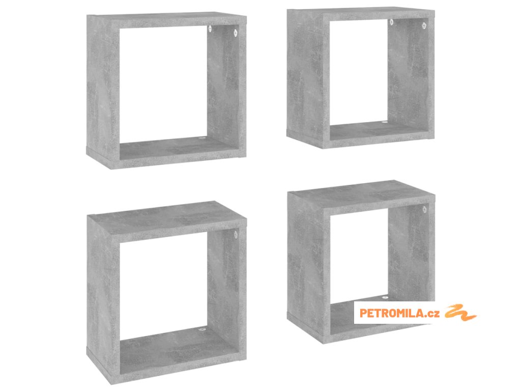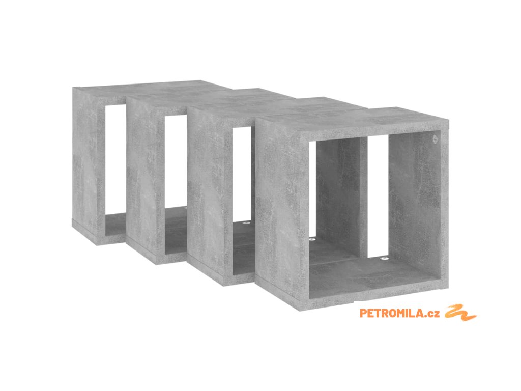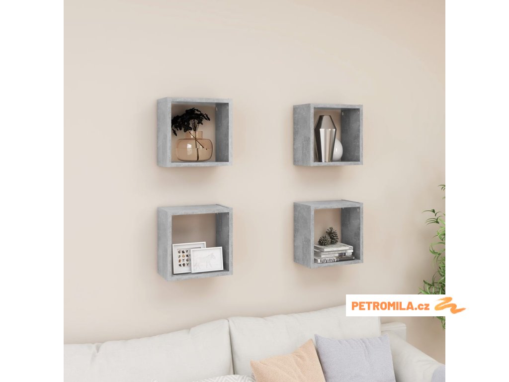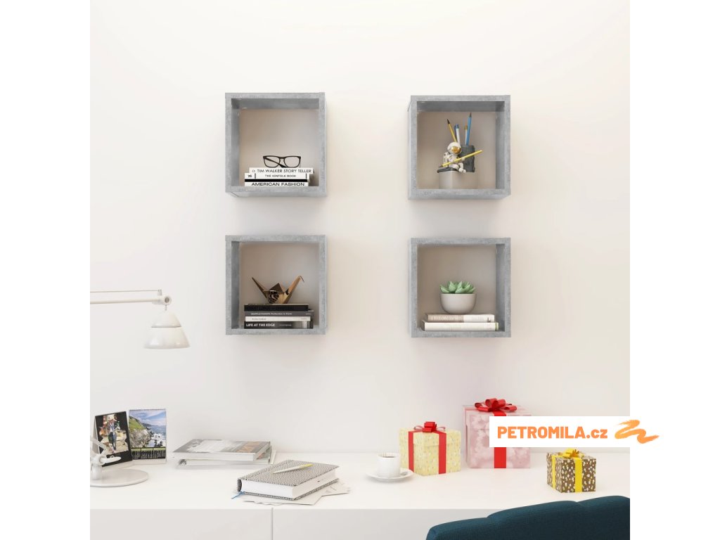 Nástěnné krychlové police 4 ks betonově šedé 26 x 15 x 26 cm