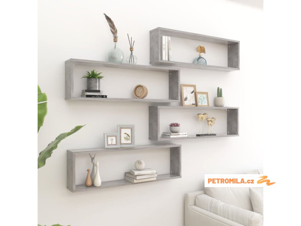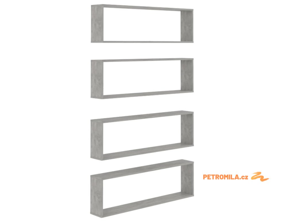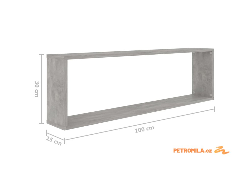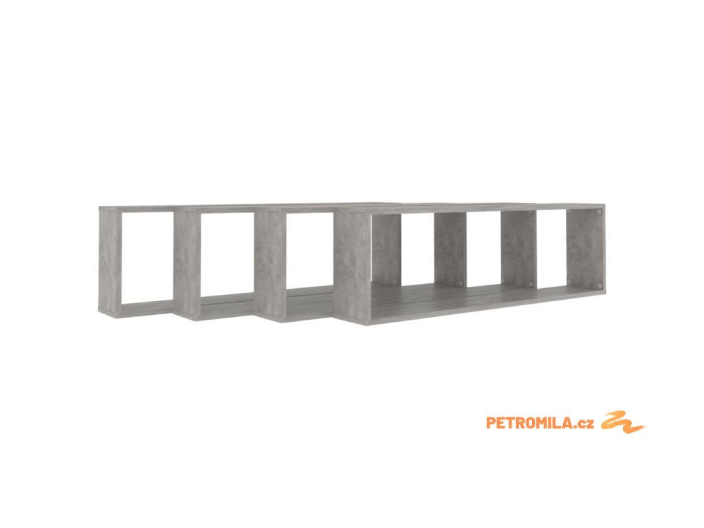 Nástěnné obdélníkové police 4 ks betonově šedé 100 x 15 x 30 cm