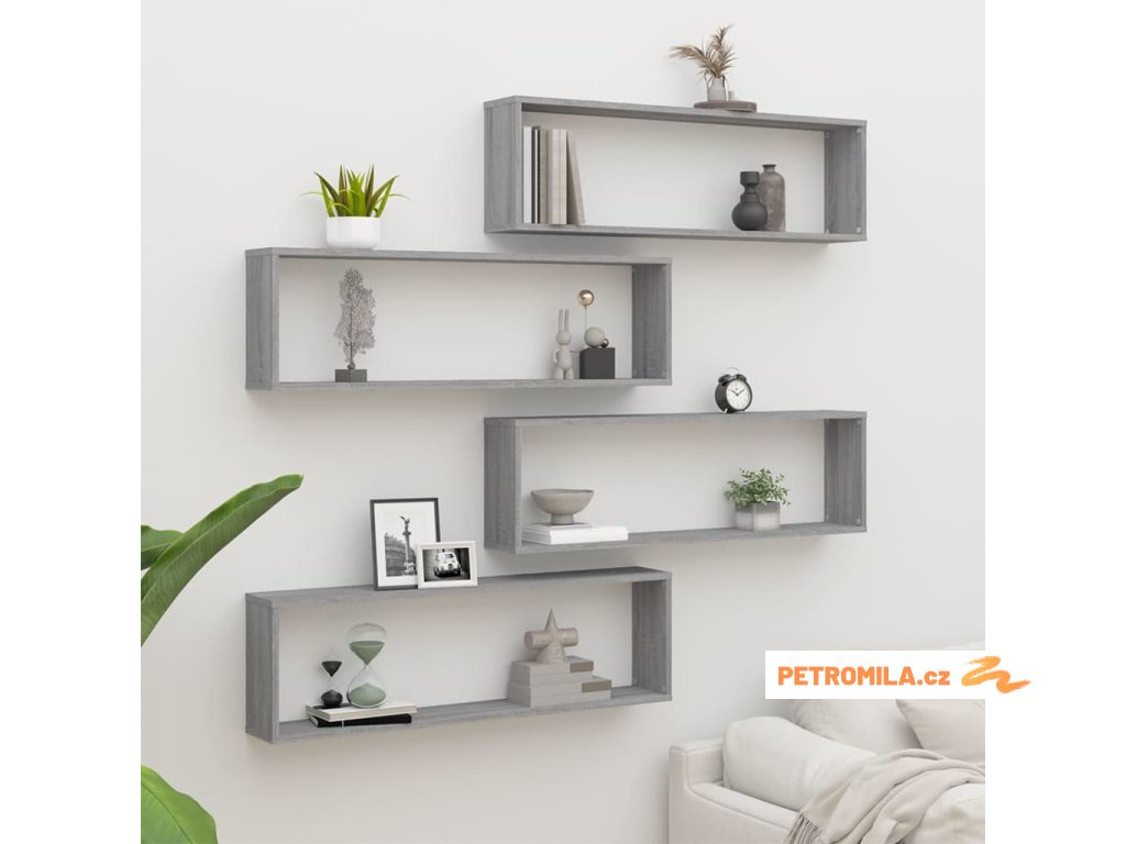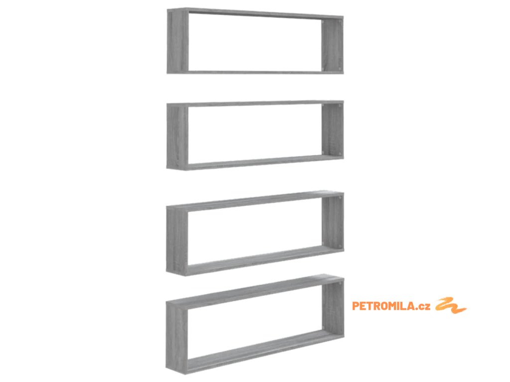 Nástěnné obdélníkové police 4 ks šedé sonoma 100 x 15 x 30 cm