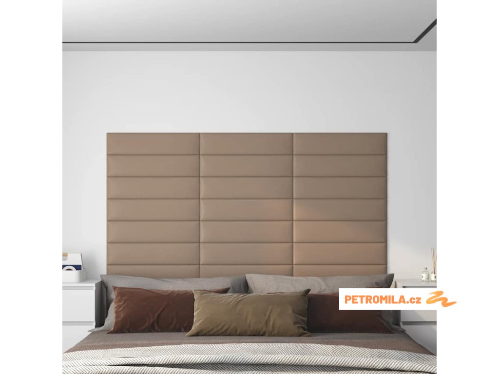 Nástěnné panely 12 ks cappuccino 60 x 15 cm umělá kůže 1,08 m²