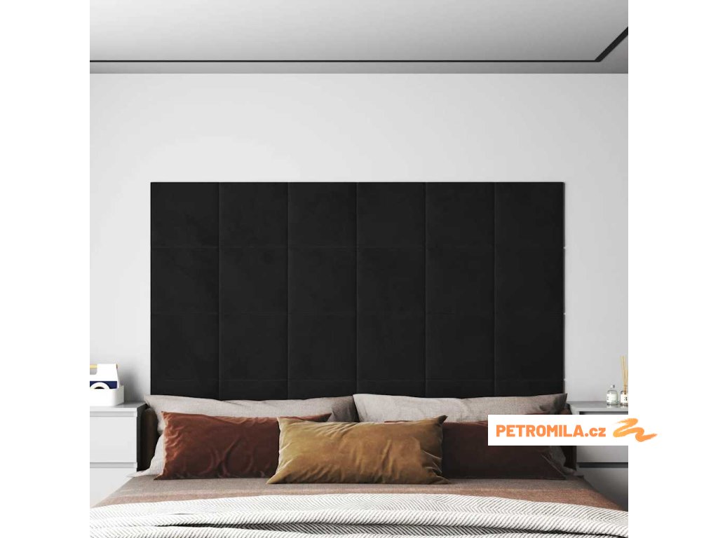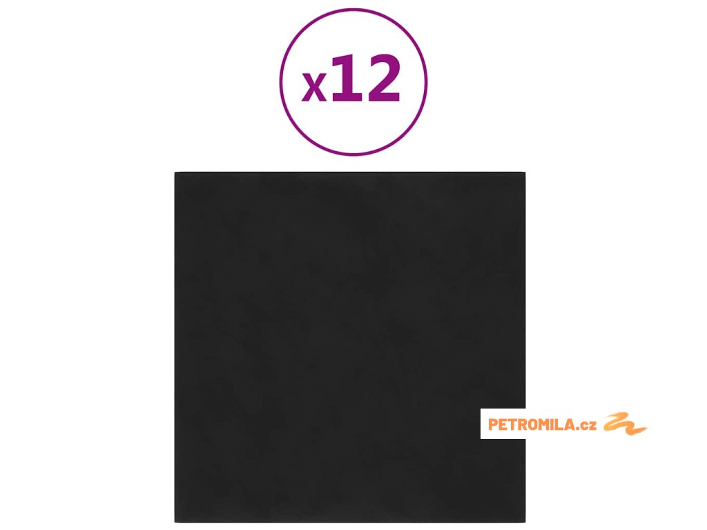 Nástěnné panely 12 ks černé 30 x 30 cm samet 1,08 m²