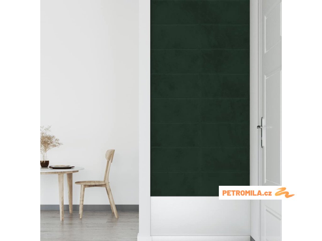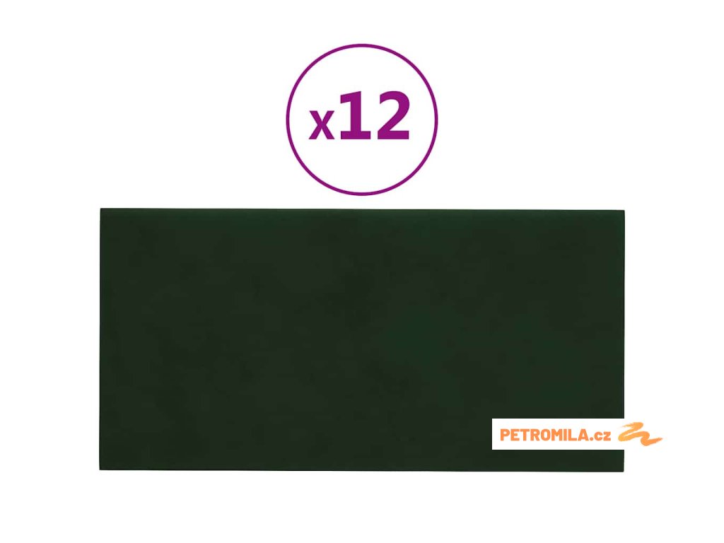 Nástěnné panely 12 ks tmavě zelené 60 x 30 cm samet 2,16 m²