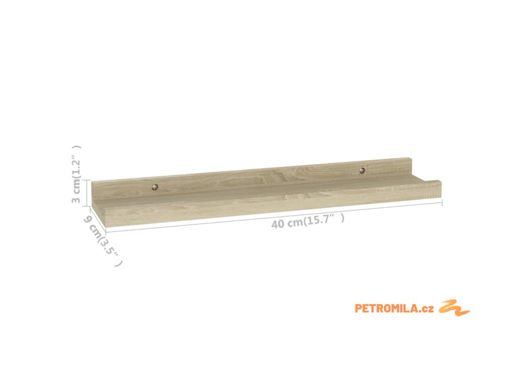 Nástěnné police 2 ks, dub sonoma, 40 x 9 x 3 cm