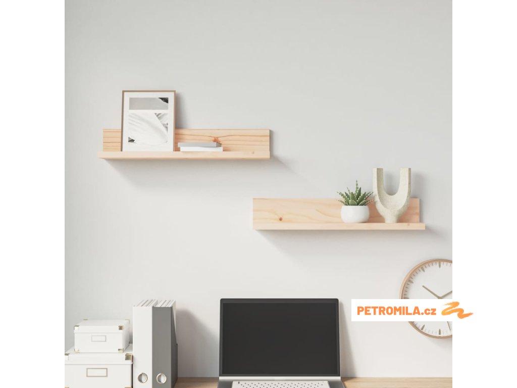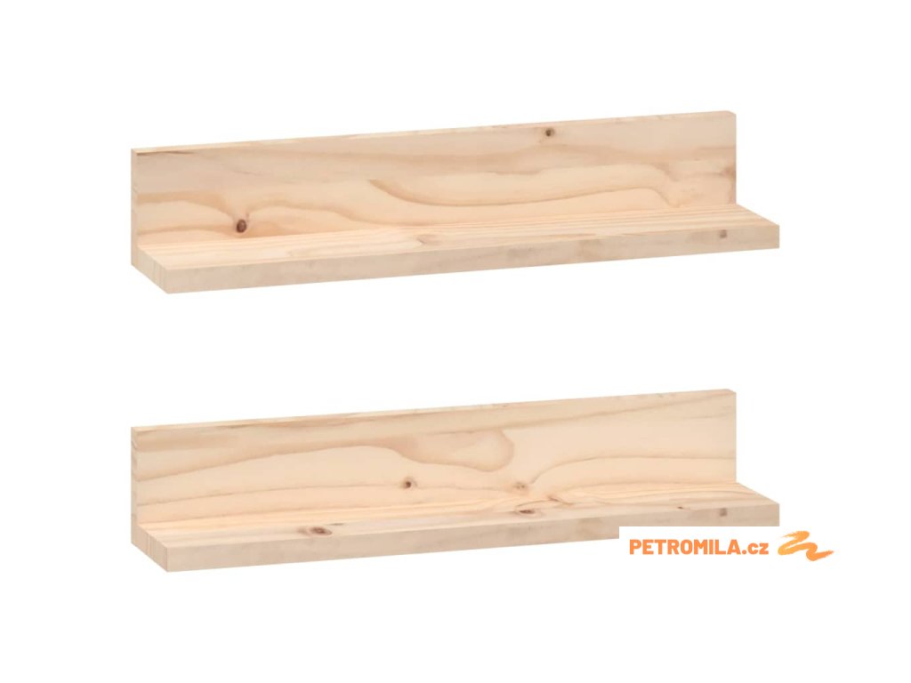 Nástěnné police 2 ks 50 x 11 x 9 cm masivní borové dřevo