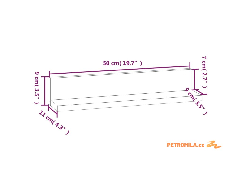 - Rozměry: 50 x 11 x 9 cm (Š x H x V)