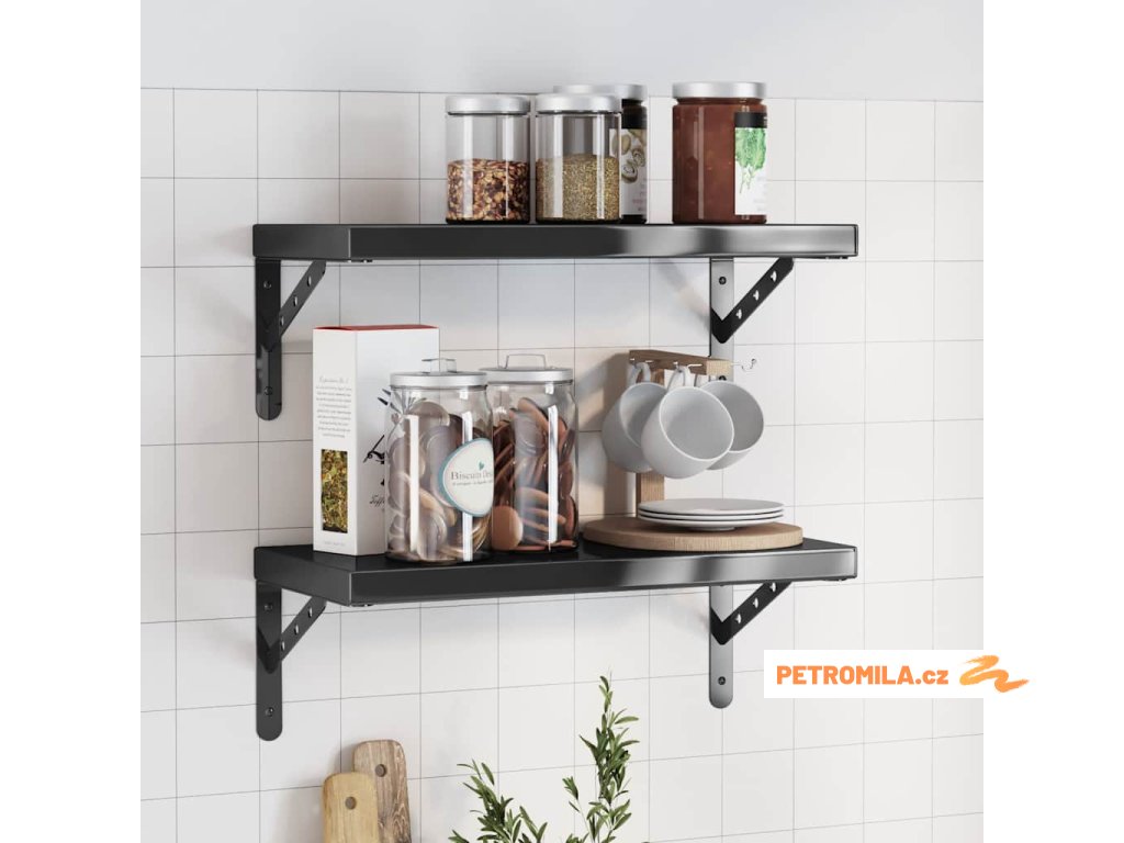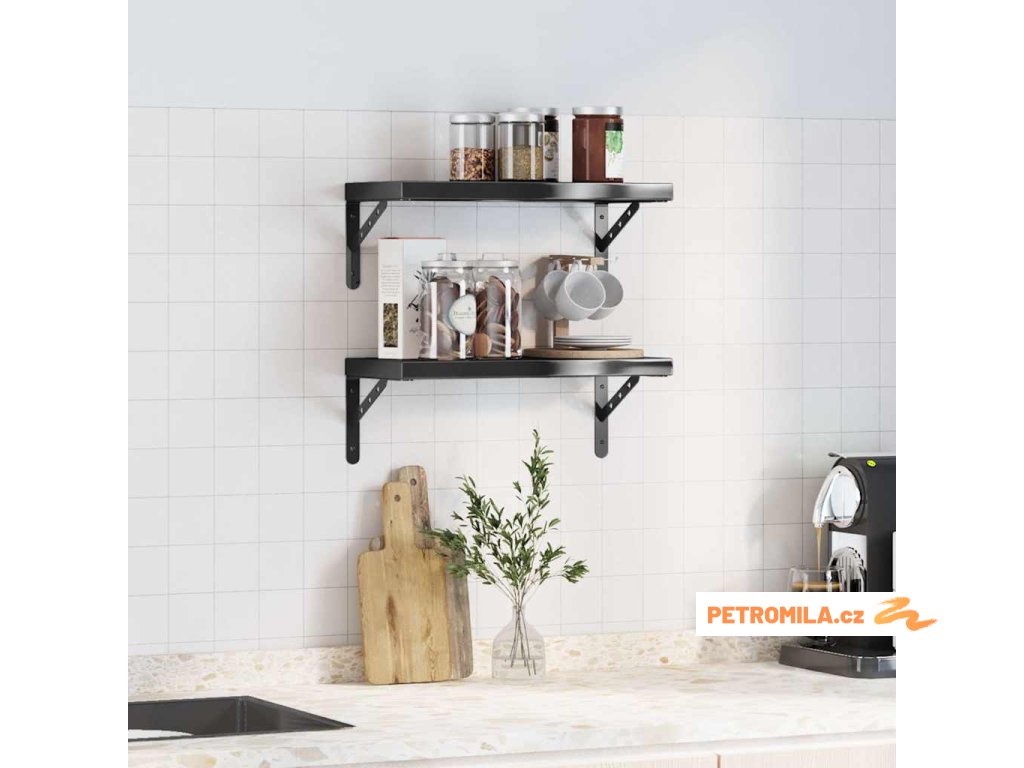 Nástěnné police 2 ks 50 x 23,5 x 3 cm černé nerezová ocel