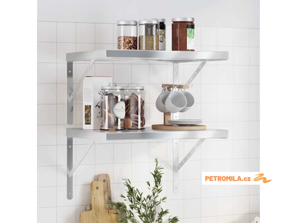 Nástěnné police 2 ks 50 x 40 cm stříbrné nerezová ocel