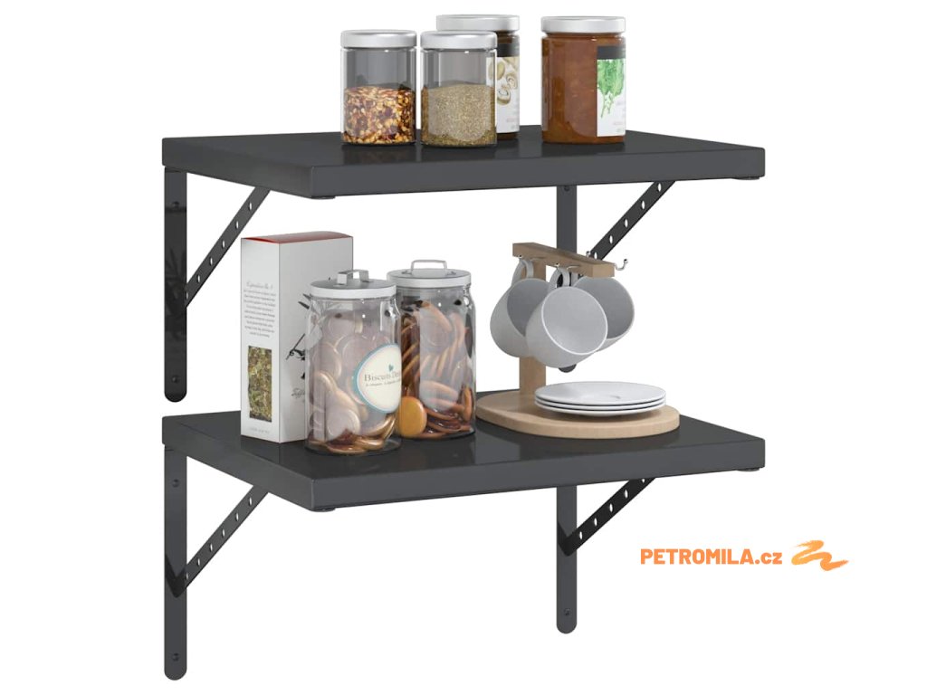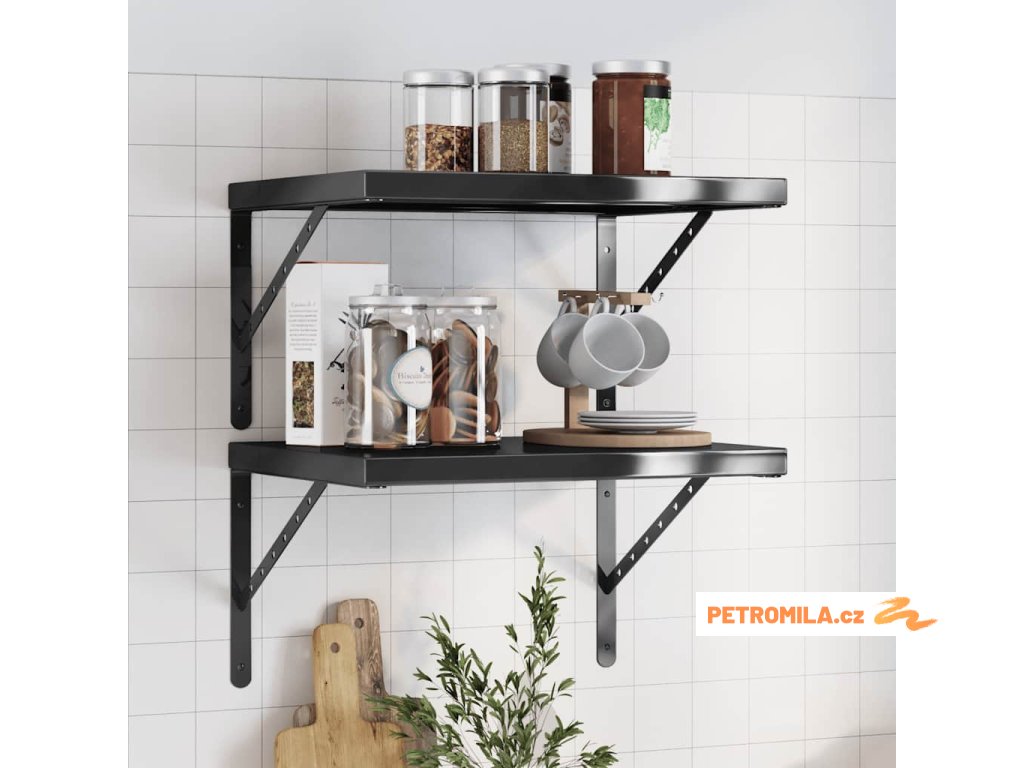 Nástěnné police 2 ks 50 x 40 x 3 cm černé nerezová ocel