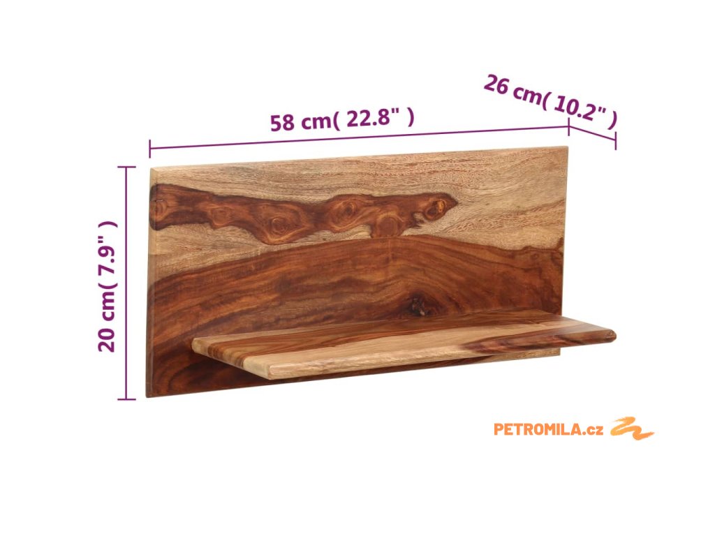 Nástěnné police jsou vyrobeny z masivního sheehsamu. Jedná se o tropické dřevo, jemuž se někdy také říká rosewood nebo palisandr a které je proslulé svou přírodní kresbou a hladkou texturou. Neohýbá se ani nepraská a vyznačuje se přirozenou odolností proti trouchnivění. Poličky jsou celé ručně dělané a jejich prvotřídní řemeslné zpracování spolu s rafinovanou kresbou dřeva činí každou z nich naprosto jedinečnou a lehce odlišnou od ostatních. Precizní rukodělná výroba rovněž zaručuje, že byla každá fáze výrobního procesu vykonána s mimořádnou péčí, ať už se jedná o leštění, natírání anebo lakování. Dřevěné police vám poslouží jako dokonalé řešení k ukládání a vystavování vaší sbírky knih, časopisů a dokumentů, ale i nejrůznějších ozdůbek, jako jsou zarámované fotografie či sběratelské předměty.
