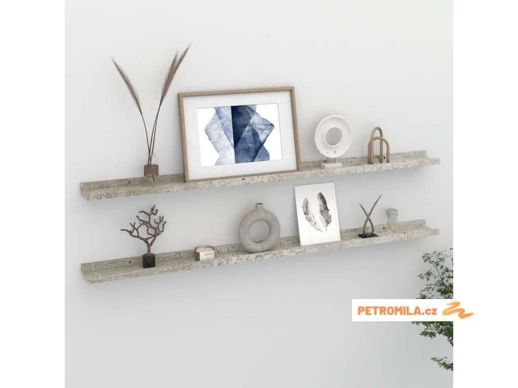 Nástěnné police 2 ks betonově šedé 115 x 9 x 3 cm