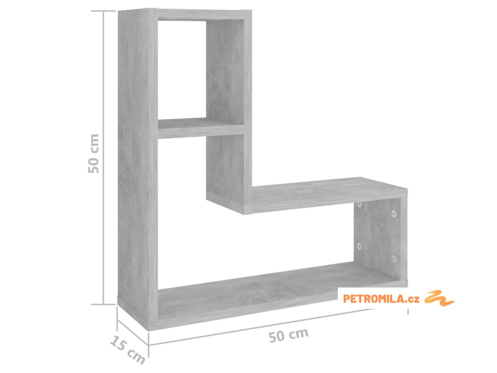 Nástěnné police 2 ks betonově šedé 50x15x50 cm kompozitní dřevo