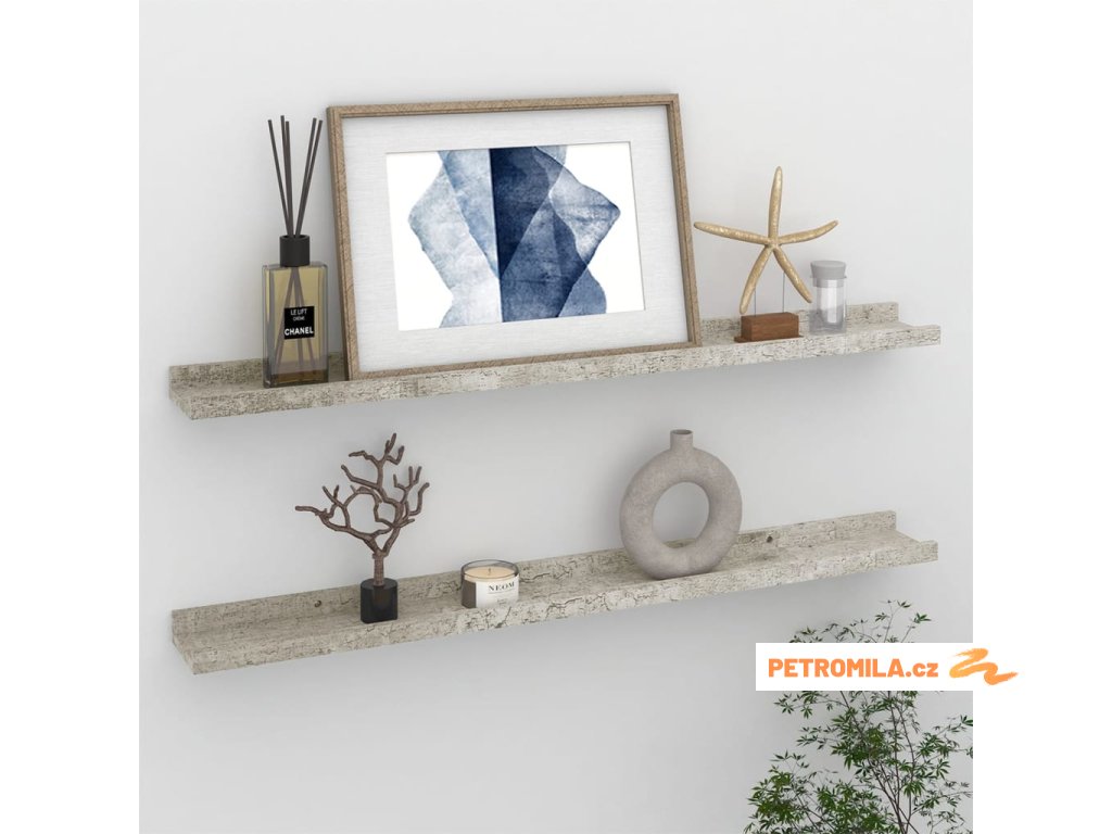 Nástěnné police 2 ks betonově šedé 80 x 9 x 3 cm