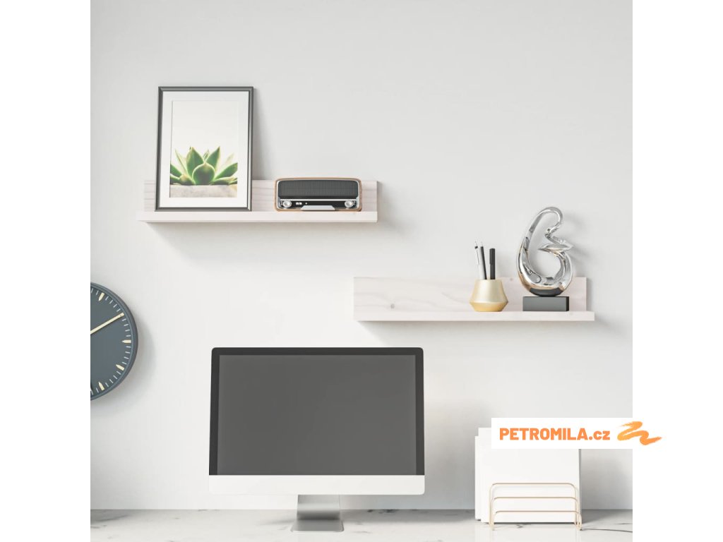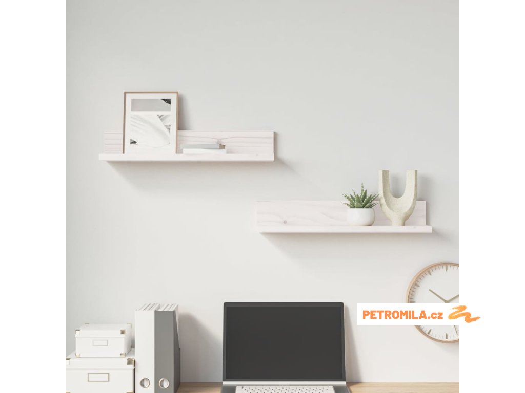 Nástěnné police 2 ks bílá 50 x 11 x 9 cm masivní borové dřevo