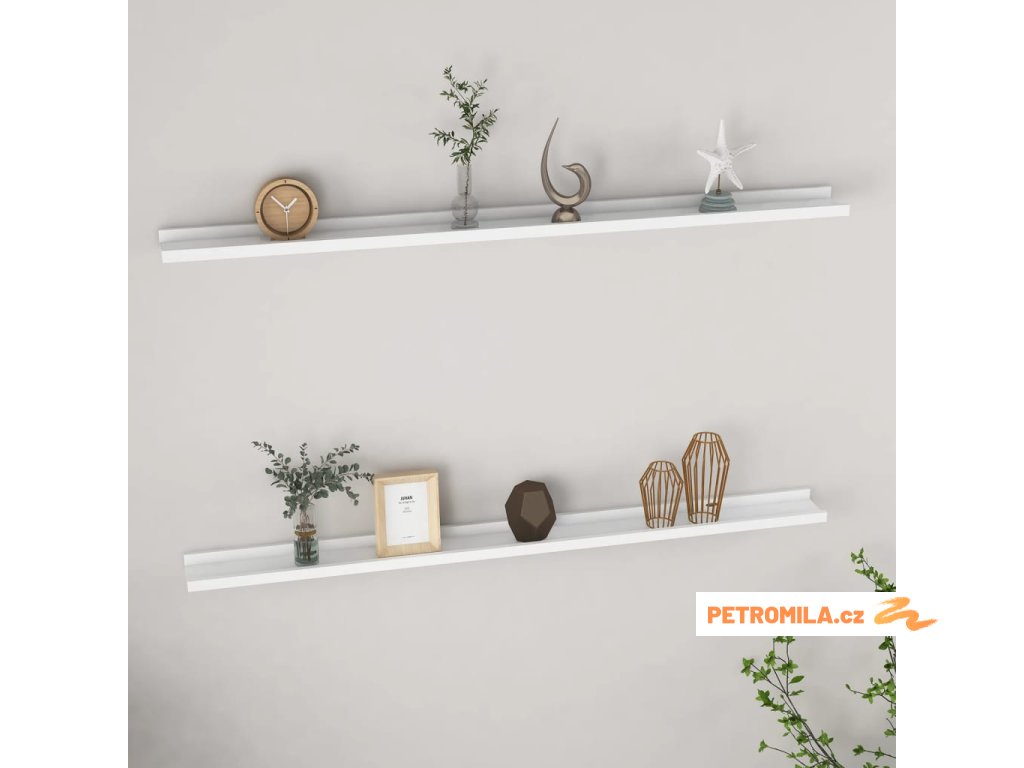 Nástěnné police 2 ks bílé 115 x 9 x 3 cm