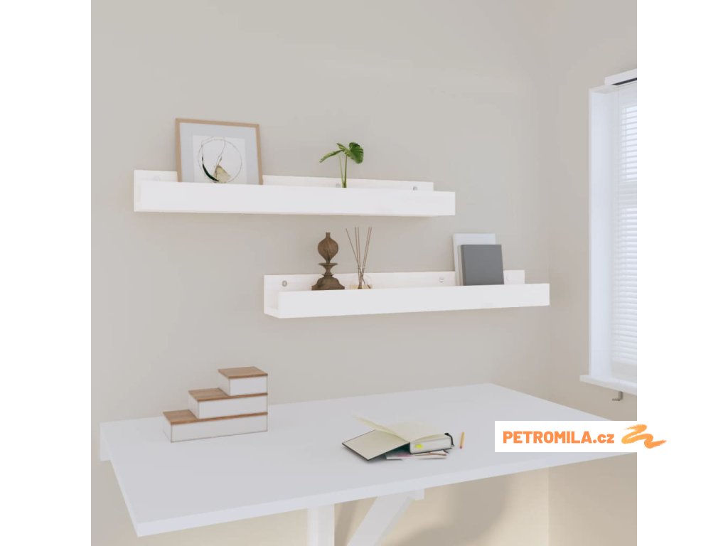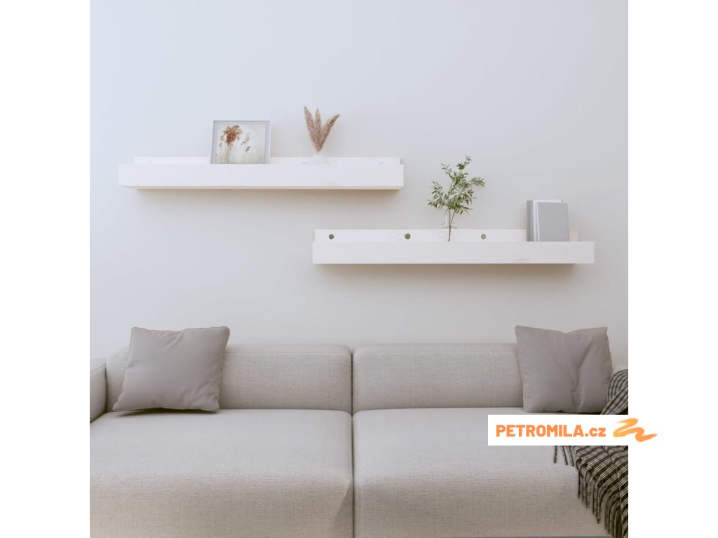 Nástěnné police 2 ks bílé 80 x 12 x 9 cm masivní borové dřevo