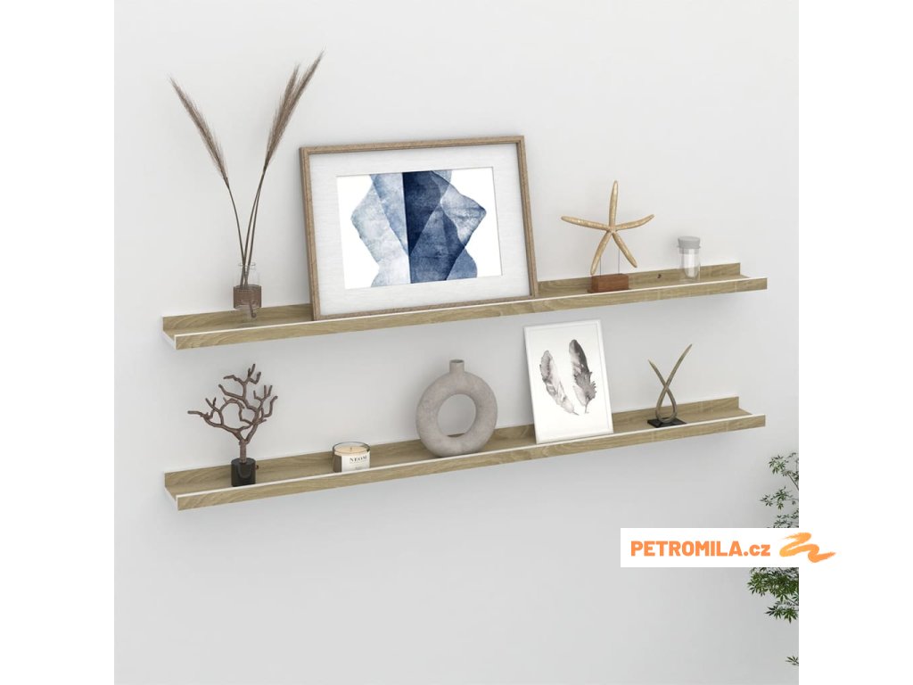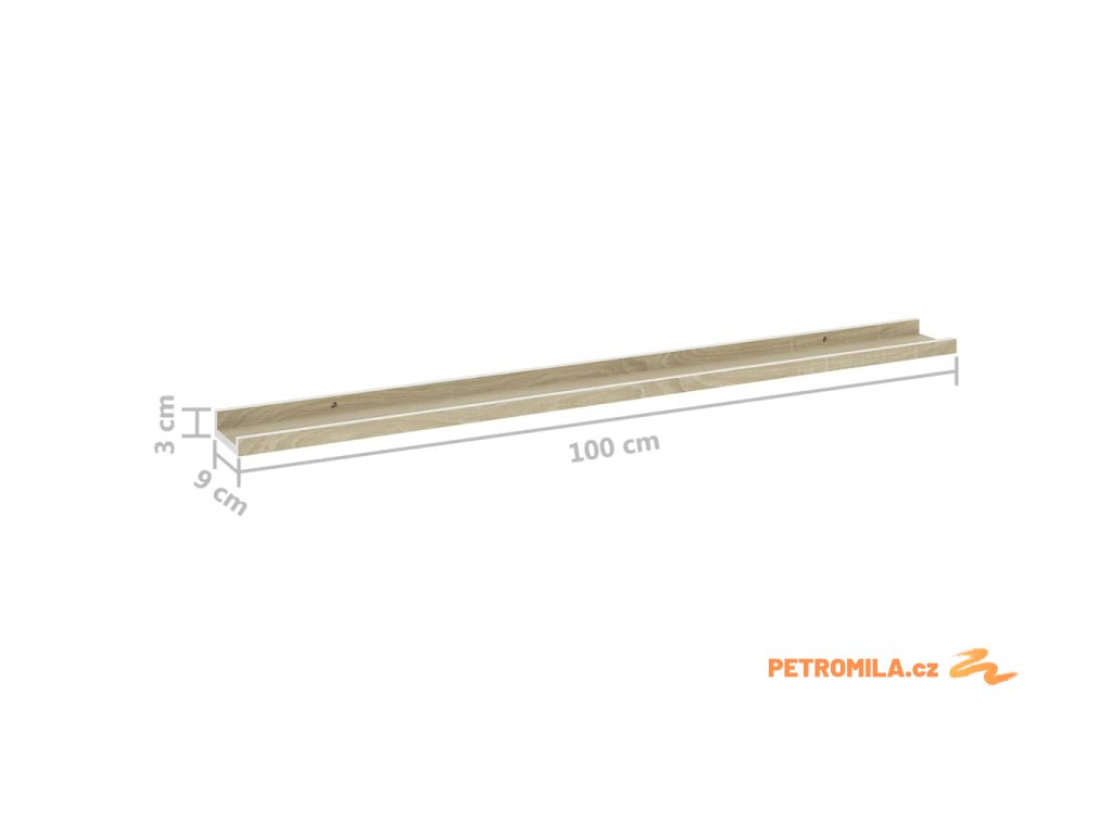 Nástěnné police 2 ks bílé a dub sonoma 100 x 9 x 3 cm