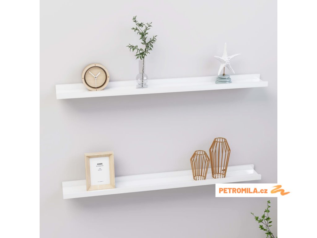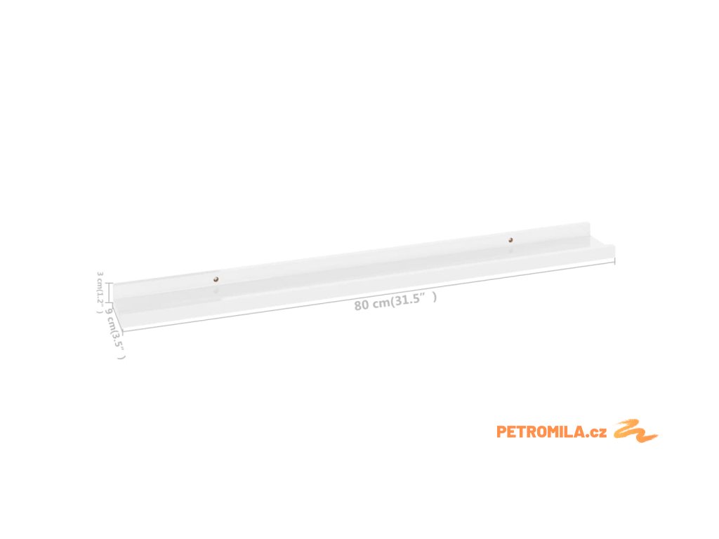 Nástěnné police 2 ks bílé s vysokým leskem 80 x 9 x 3 cm