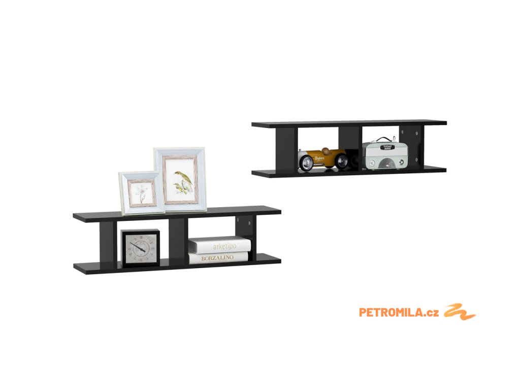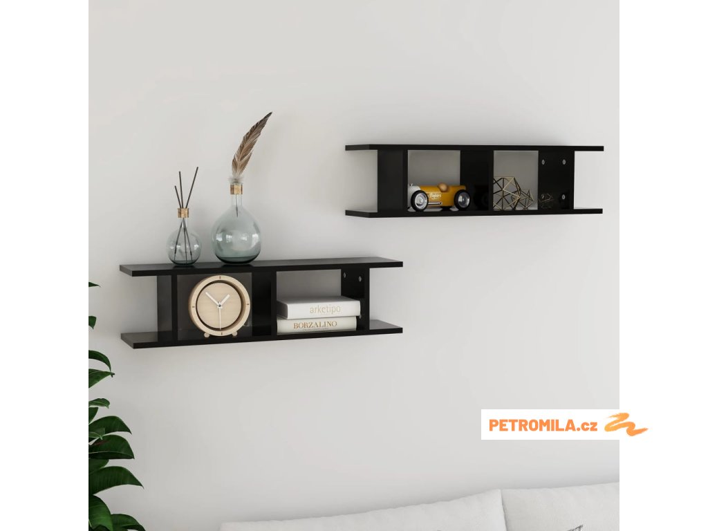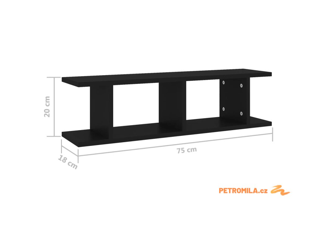 Nástěnné police 2 ks černé 75 x 18 x 20 cm kompozitní dřevo