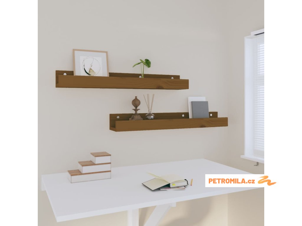 Nástěnné police 2 ks medově hnědé 80x12x9 cm masivní borovice