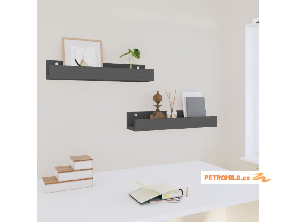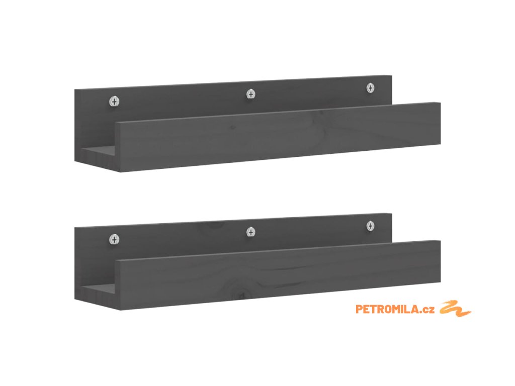 Nástěnné police 2 ks šedé 50 x 12 x 9 cm masivní borové dřevo