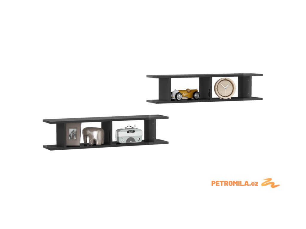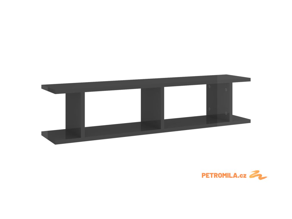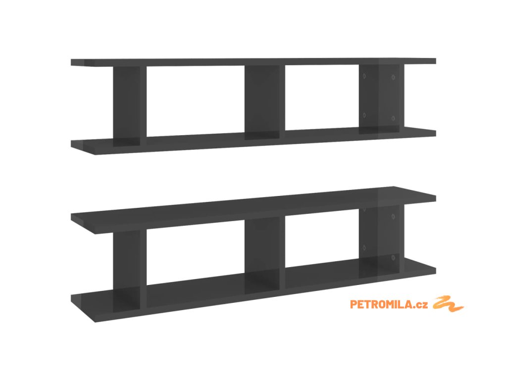 Nástěnné police 2 ks šedé lesklé 90x18x20 cm kompozitní dřevo