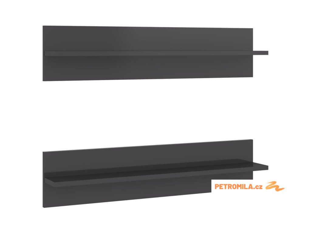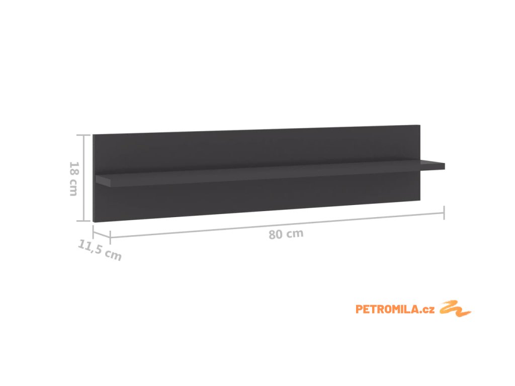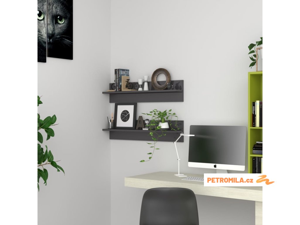 Nástěnné police 2 ks šedé vysoký lesk 80x11,5x18 cm kompozit
