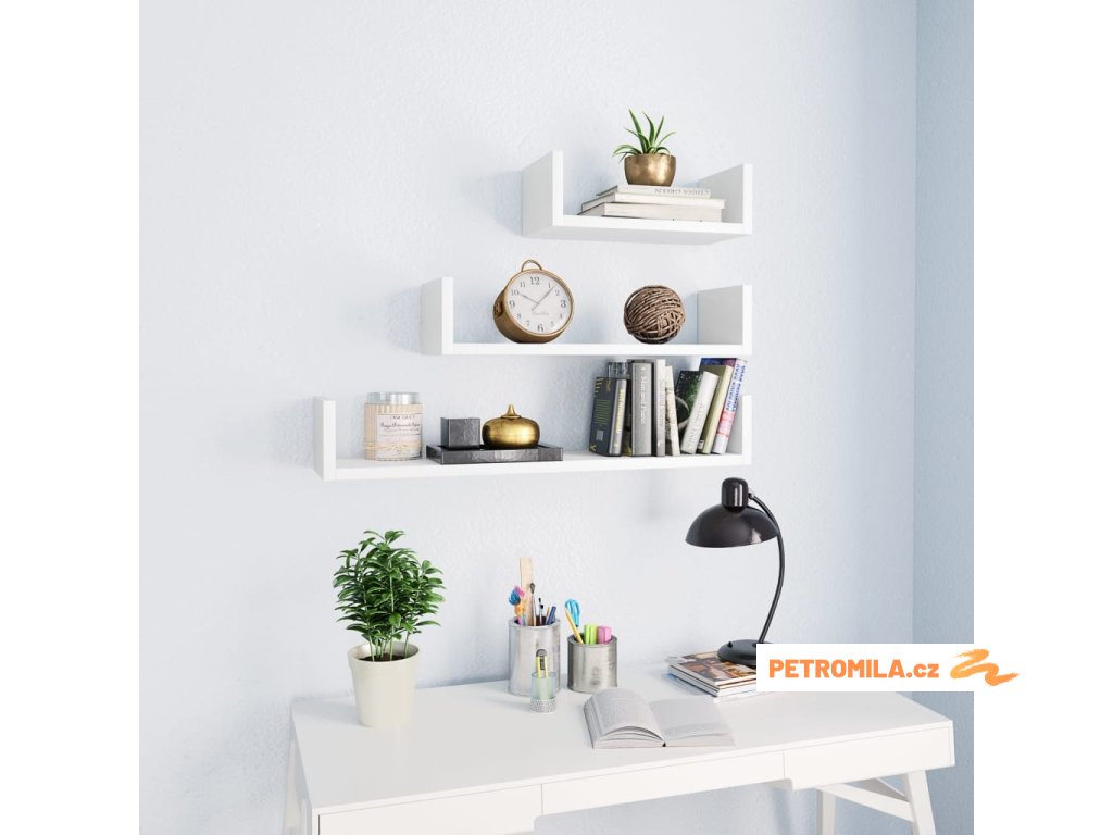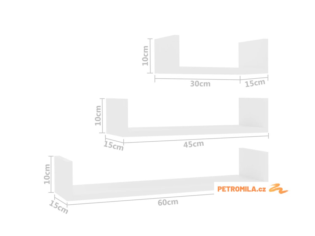 Nástěnné police 3 ks bílé kompozitní dřevo